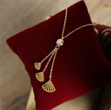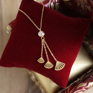 Dây chuyền titan CD kẹp đá (vàng hồng)