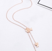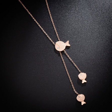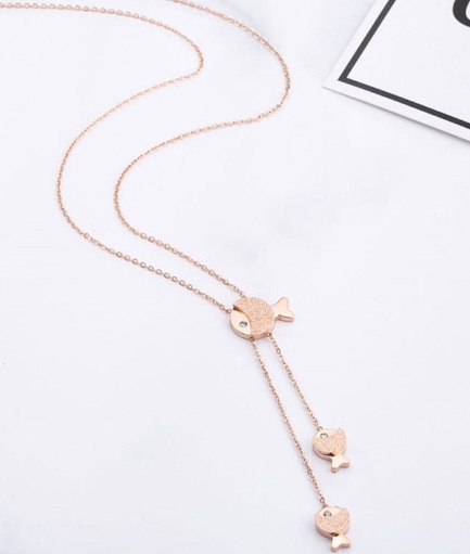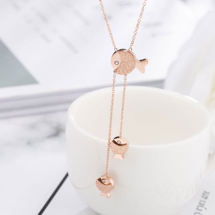 Dây chuyền titan cá phun cát 2 dây rơi (vàng hồng)