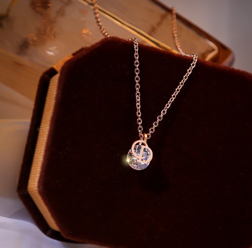 Dây chuyền titan CD kẹp đá (vàng hồng)