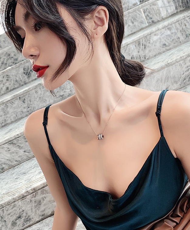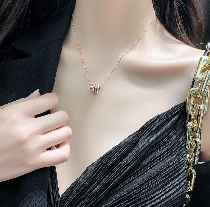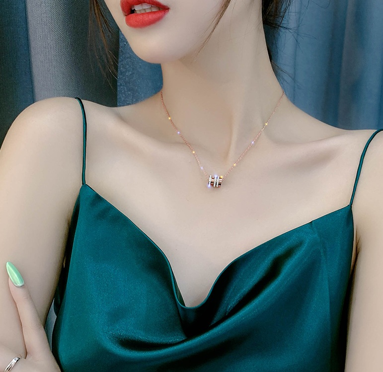 Dây chuyền titan charm ống 3 hàng đá (vàng hồng)