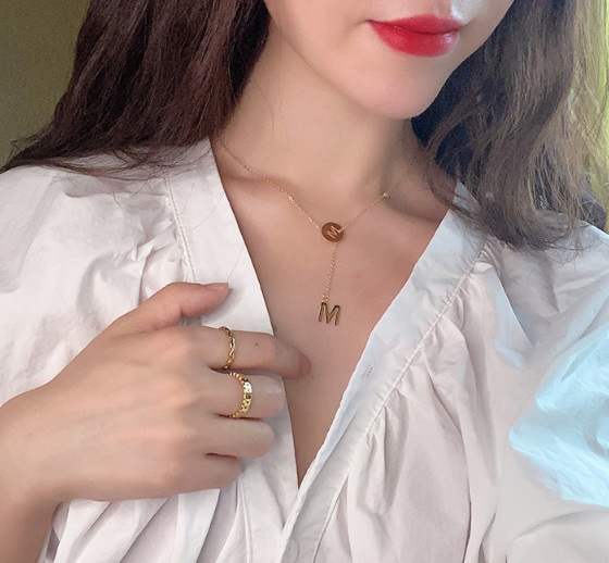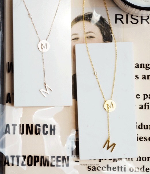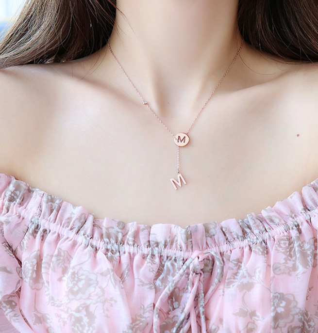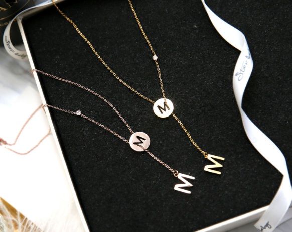 Dây chuyền titan chữ M (màu vàng/ vàng hồng)