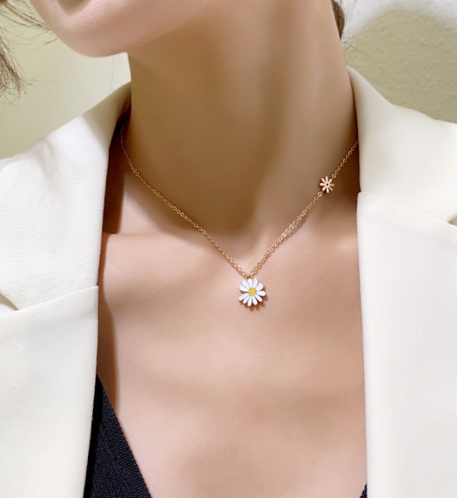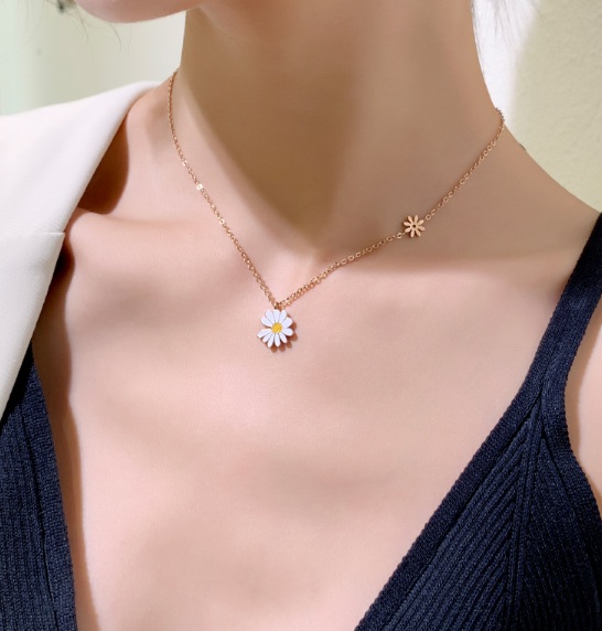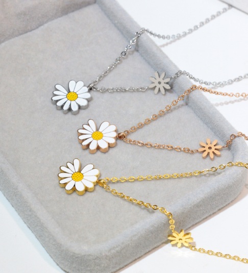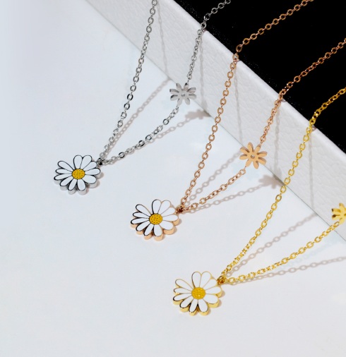 Dây chuyền titan hoa cúc GD (trắng/vàng/vàng hồng)