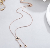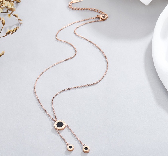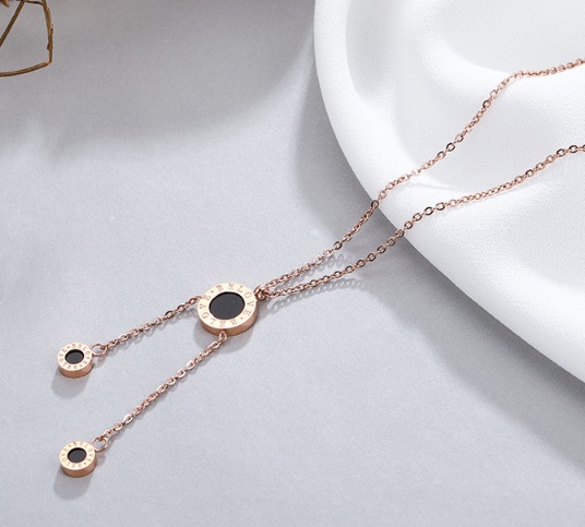 Dây chuyền titan mặt đen tròn lớn bé (vàng hồng)