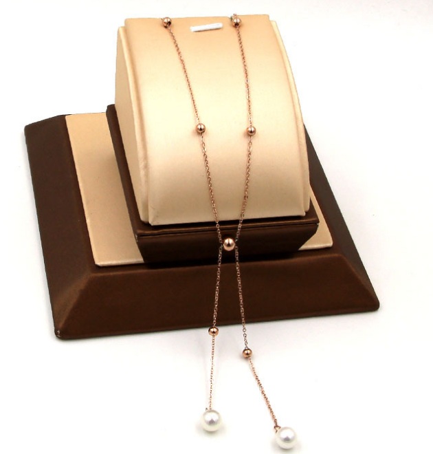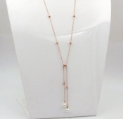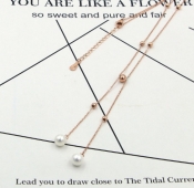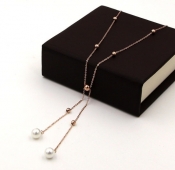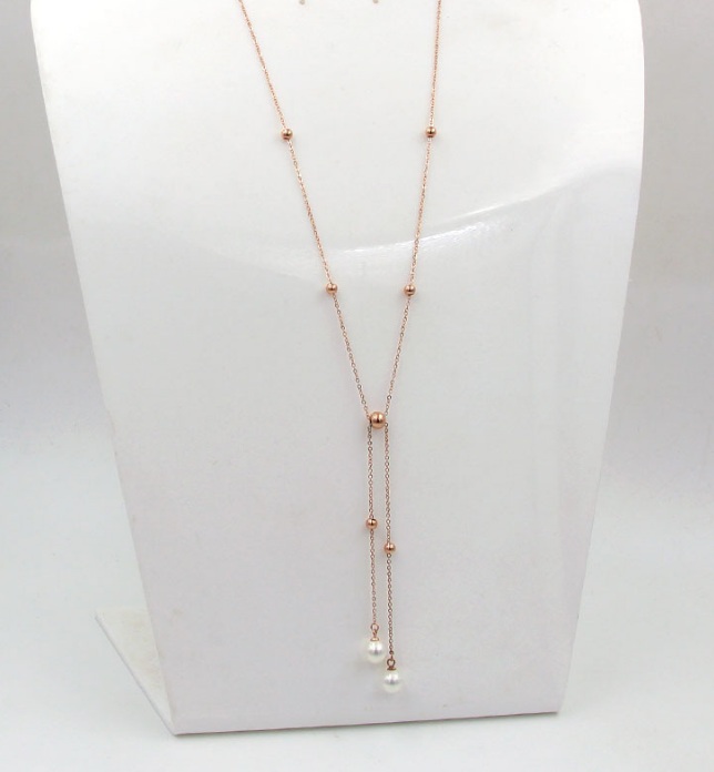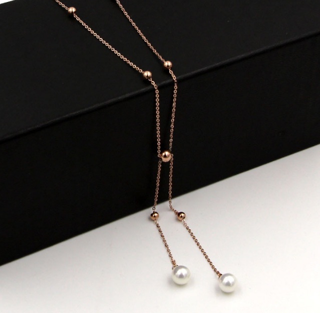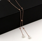 Dây chuyền titan ngọc trai form dài (vàng hồng)