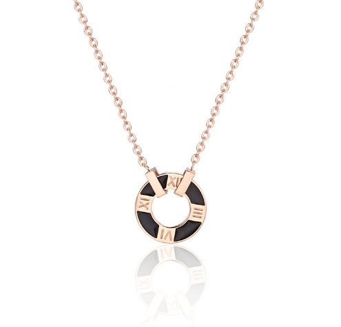 Dây chuyền titan vòng tròn đen khắc la mã (vàng hồng)